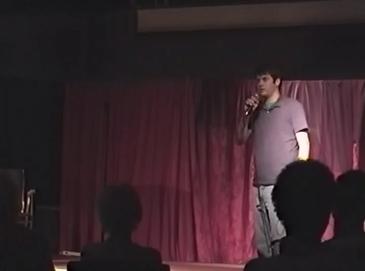 There’s me, 24-years old and a head full of hair, doing stand-up for the first time at Flying Monkey Theatre at Lowe Mill, 2010
